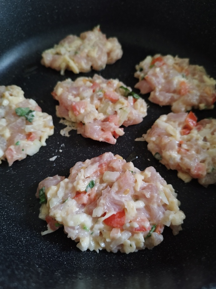 3. Выкладываем ложкой на сковороду с небольшим количеством масла небольшие "котлетки", приплющивая их чуть сверху.