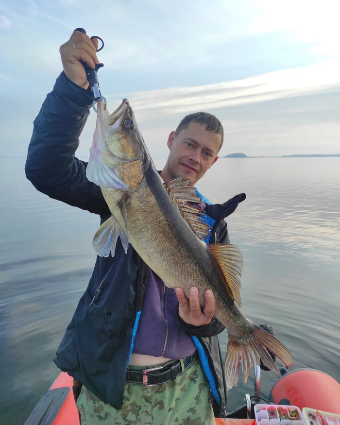 Сначала Серёга поймал судака ровно на 4 кг: