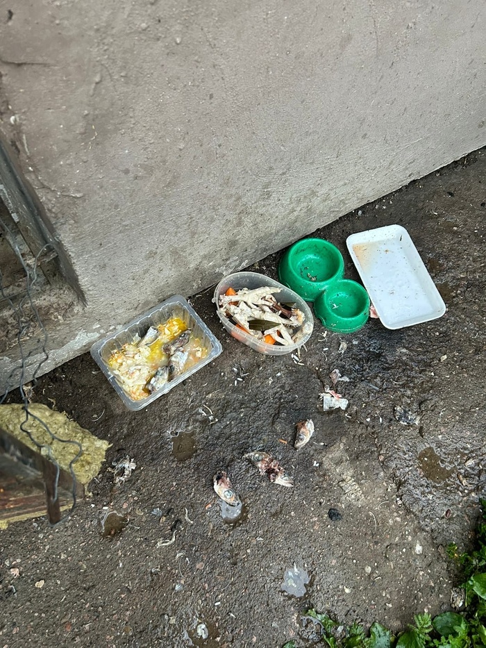 Пожалуйста, не кормите никого костями. Даже если очень хочется. Не вываливайте помои у парадных и на даче - это не еда для животных. Если хотите покормить, лучше купить корма - в любом магазине, на любом маркетплейсе - сейчас огромный выбор и все очень недорого. Если вы не можете себе позволить купить корм за 100-200 рублей - лучше вообще не кормите никого (в принципе любое предприятие по кормлению кошек надо начинать со стерилизации, иначе все это будет медвежьей услугой).