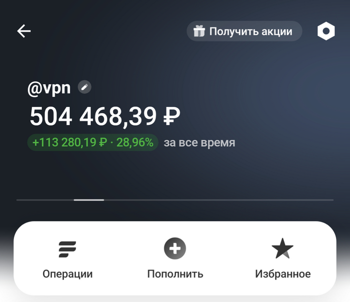 Вырученные деньги я закидываю на брокерский счет, где уже в течении года постепенно покупаю акции РФ, никаких спекуляций, интрадей, шортов и сигналов — обычная покупка в лонг.
