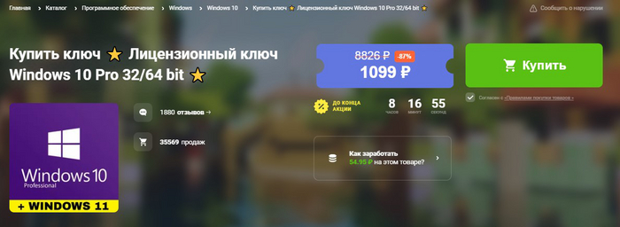 Рассмотрим альтернативные методы покупки ключа для Windows 10, которые предполагают его приобретение через посредников на популярных онлайн-платформах. Вот несколько из них: