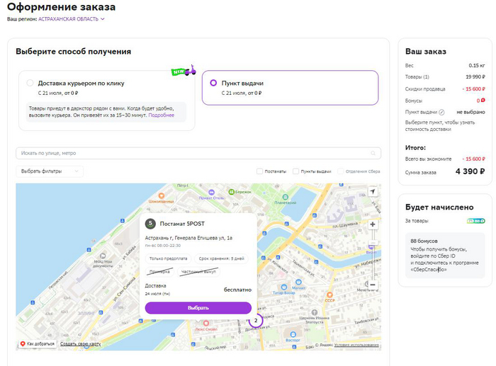 2. Мы можем выбрать удобный способ получения товара: курьерскую доставку или самовывоз. Интересно, что в качестве пункта выдачи товара могут выступать отделения Почты России, пункты выдачи СДЭКа или даже постаматы 5POST.