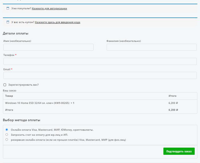 2. Процесс оплаты на СофтМонстре, пожалуй, самый простой и понятный. Нет необходимости переходить по разным страницам. Вам просто нужно ввести свои данные, выбрать удобный способ оплаты, и затем ожидать получения ключа на свою электронную почту.