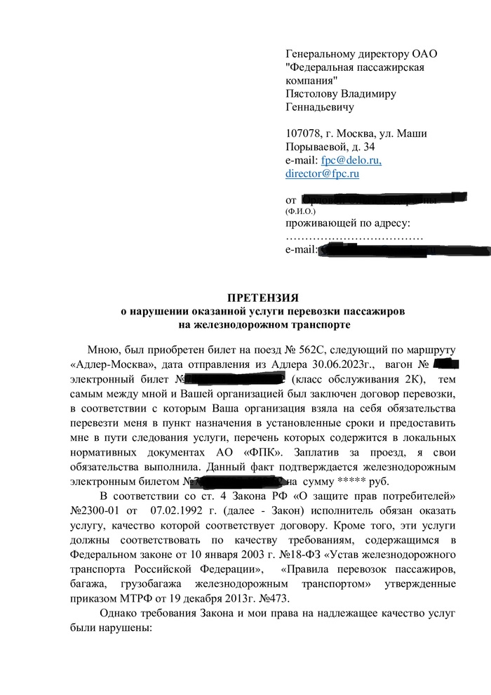 Я получила отказ от РЖД урегулировать в досудебном порядке данную ситуацию(по имейл)