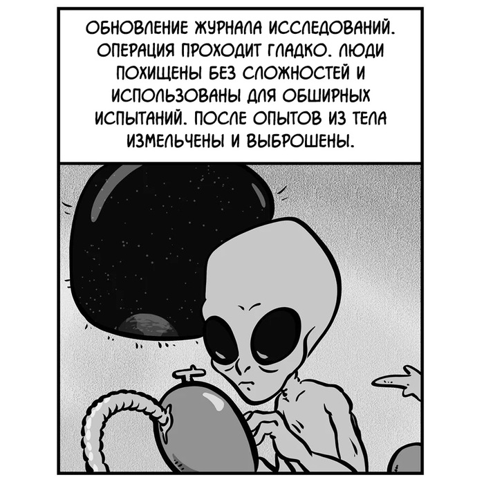 Полностью нарушен цикл сна. Постоянно кажутся слышимыми звуки, словно снаружи корабля есть что-то живое. Вышел из стоя накопитель фотонов. При оценке отмечены следы, на 100% соответствующие зубам уже утилизированного объекта. Сны становятся все более пугающими, в последнем мы видим члена нашей команды, первым совершившим суицид, объятым пламенем, которое он не способен потушить, что вызывает смех у антропоморфных рогатых фигур. Члены команды вивисекции жалуются на то, что при попытке заснуть видят утилизированных ими людей, которые что-то спрашивают и тянут к ним руки. Несмотря на полную ненарушенную одиночную изоляцию, двое были убиты холодным оружием, четверо, вероятно, совершили суицид. Уточнение. Не выяснен способ, как одному из погибших удалось разбить голову о потолок загона для крупных объектов, вчетверо превышающем его рост, а другому оторвать себе голову. Патогены не выявлены. Пришёл запрос на исследование мистического познания вида "человек". Приняты меры: оставшиеся дроны использованы для наблюдения за станцией, что, ввиду отсутствия случаев убийства нами себе подобных уже долгий срок, ранее казалось ненужной мерой.