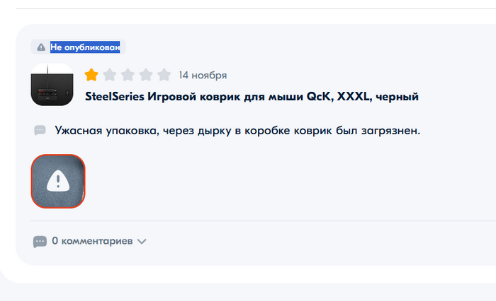 Ответ Ozon в «Озон, что с упаковкой?! Купил коврик SteelSeries, а он пришел грязный – отзыв отклонили»