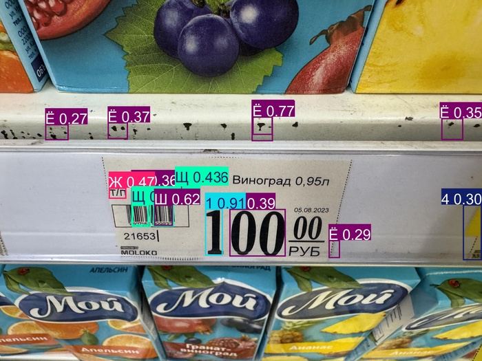 2. Нужно обязательно понимать какой размер фото загружаем в относительно обученную модель (да да, есть относительно обученная модель уже - 2 суток комп гонял на небольшом датасете). Если не указать размер фотографии с ценником - может вообще ничего не распознать, если указать неверный - может часть распознать, а часть нет, по одиночным фото в посте можете это понять. Посему нужно при загрузке фотографии - читать размер в пикселях по Оси Х и вбивать это в предикт.