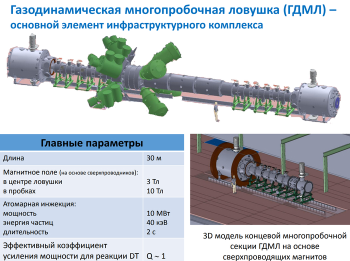 Если вопрос "можно ли сварганить из конкретной установки ГДМЛ, как она есть, энергодобывающую?" - то да: в принципе можно, но только в виде гибрида. Предполагаемые Q~0.1..1 (у ИТЭР ~5). Это установка, если сравнивать с токамаками, уровня "чуть-до-ИТЭР" или "почти ИТЭР" (только в 250 раз дешевле).