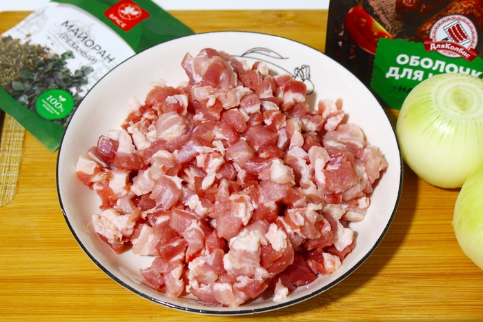 Важный момент - слишком плотно набивать колбаски не нужно. Иначе оболочка при термообработке лопнет.
