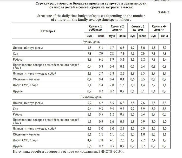 В них видно, что женщины пашут в семье минимум втрое больше мужчин (а бывает, что и впятеро).