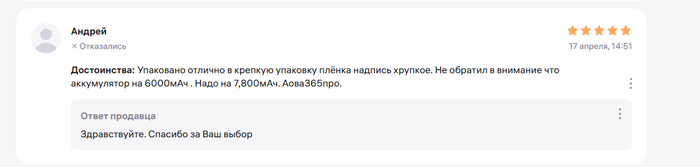 Подумал, что ошибка и решил, что быстро исправят. Написал заявление на возврат по браку. Приложил все документы, в том числе фото коробки, где указаны параметры, меньше заявленных. Через пару дней пришел отказ, с формулировкой, что продавец не нашел брака на фото.