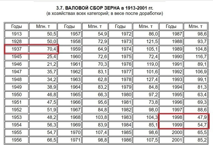 По данным Межведомственной комиссии Совета Безопасности Российской Федерации по экономической безопасности, в 1997 году по сравнению с 1990 годом произошло снижение потребления мяса на 35 %, молока — на 41 %, яиц — на 31 %, рыбы — в 2,2 раза, в то же время выросло на 19 % потребление картофеля.