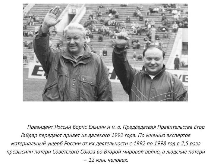"Тяжелые условия жизни народа России и значительное сокращение его численности явились следствием тех мер, которые были осуществлены в период с 1992 года под руководством и при активном участии президента Ельцина… Есть серьёзные основания считать, что сокращение численности населения также охватывалось намерением президента. Стремясь в конечном итоге добиться изменений в стране социально-экономического уклада и обеспечить с помощью нарождающегося класса частных собственников укрепления своей политической власти, президент Ельцин сознательно шел на ухудшение жизненных условий российских граждан, с неизбежностью влекущее повышение смертности населения и сокращение его рождаемости…"