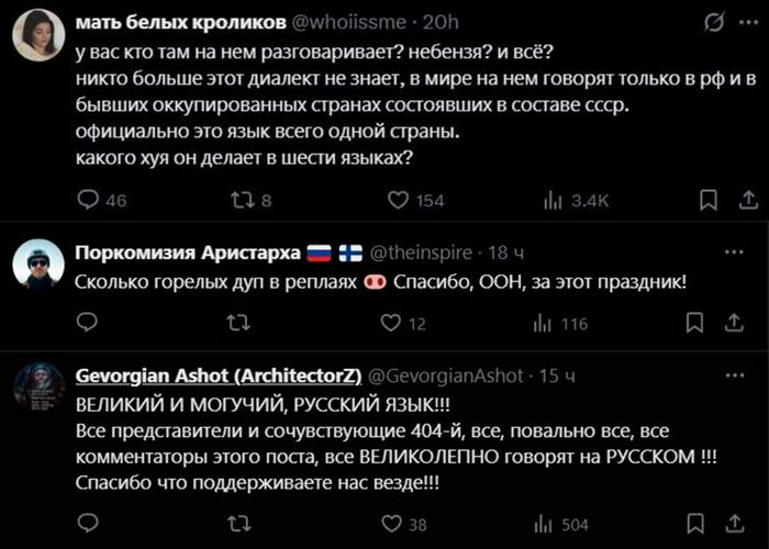 Ответ на пост «Аккаунт ООН поздравил с Днем русского языка: в комментариях жара»