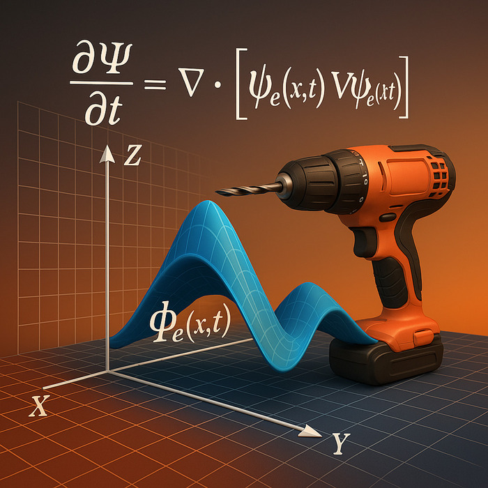 4. **"Обобщённый закон Ома" `∂Ψₑ / ∂t = ∇ · [φₑ · ∇Ψₑ]`:**