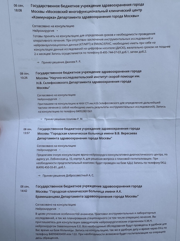 Попасть ко врачу который может жмать на отклик, нужно через участкового врача, очередь туда сидит как на ноев ковчег, но я помню сроки, чувствую эту тварь в спине и мной движет жажда быть срочно вылеченным. Игнорирую очередь, крики старух, врываюсь в кабинет, игнорирую возражения врача и её единственный повторяющийся раздраженным голосом вопрос - вы записаны? Просто настойчиво тараторю что срочно надо жмать, я еле хожу, и вообще мне плевать, попутно тыкая ей списком откликов. Получилось, сработало! Дала направление лишь бы перестал орать. Записываюсь удачно прям на следующий день к неврологу, мой выбор почти в кармане, а дома всего пала таблеток мидокалма в остатке. Следующий день - мне звонят из поликлиники и сообщают - не приходите, врач который может жмать в отпуске и будет через две недели и резко кладут трубку, я в ярости, перезвонить невозможно, телефон одноканальный. Надо идти, как по минному полю но надо идти, у меня нет двух недель, меня ждут в склифе.