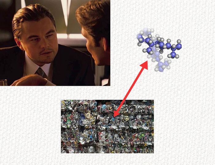 Молекула полиэстера из правого верхнего угла хороша знакома всем, кто уже видел эту бутылочку в стене хлама.