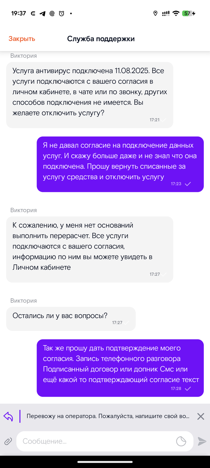 Это еще малой кровью отделались. Мне мой местный подмосковный провайдер подключил пакет из 3х «защит» суммой 630 р/мес. Подключил еще в марте 2023г. На главной ЛК написана только сумма тарифа интернет при том с четкой формулировкой «стоимость ВСЕХ услуг», а подписки где-то в закладке Софт куда нормальный человек вообще никуда не зайдет. Тарификация у них ежедневная, т.е. сумма разбивается по дням и списывается ежедневно с баланса. Пополнял баланс по смске от провайдера что скоро деньги кончатся. А вот то что такие смс приходило раз в 3 недели, а не 4 с половиной, как должны были, я заметил только через 2,5 года. При том совершенно случайно, когда решил посмотреть средние траты за год в приложении банка :) провайдер Горком/SevenSky. По телефону предлагали компенсировать 6 мес баллам, что бы я их еще сам активировал ежемесячно по 50% от стоимости тарифа. Отказался. Буду писать претензию и в потребнадзор. PS. Все переписки и пруфы в наличии*
