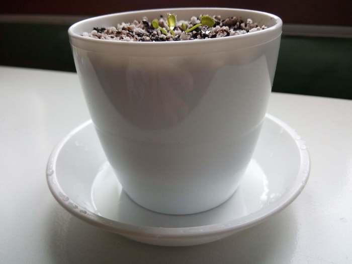 При температуре ниже 5 градусов мухоловка не нуждается в свете и может зимовать без досветки. Но спасибо мужу - переделал выключатель внутри холодильника, чтобы можно было оставлять свет включённым даже при закрытой дверце. Температура зимовли была 5-6 грасусов, освещение 8-9 часов. Сначала запаковала вместе с поддоном, в который поливала (мухоловку поливают снизу), но потом убрала его, чтобы конденсат со стенок пакета впитывался обратно через дренажные отверстия. Периодически нужно следить за влажностью субстрата и не появилась ли плесень. Если корни не торчат снизу, воду в поддоне держать не следует. Но у моей дионеи они проросли через отверстия внизу горшка, так что держала уровень воды около 1-2 мм.
