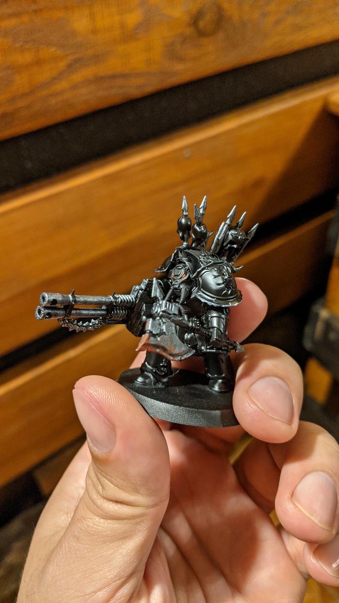 Итак, я принял ответственное решение взрослого человека и потратил около 2000грн на набор терминаторов хаоса и всё минимально необходимое для их сборки и покраски. Будучи по жизни человеком весьма ветреным и непоседливым, я опасался что всё это ляжет бесполезным хламом на полку, но не тут то было. Затянуло это дело меня не только с головой, но и со всеми остальными частями тела настолько, что с работы я несусь на всех парах, чтобы до часу ночи каждый божий день играть с цветом и оттенками, светом и тенью и... Ну в общем вы поняли.