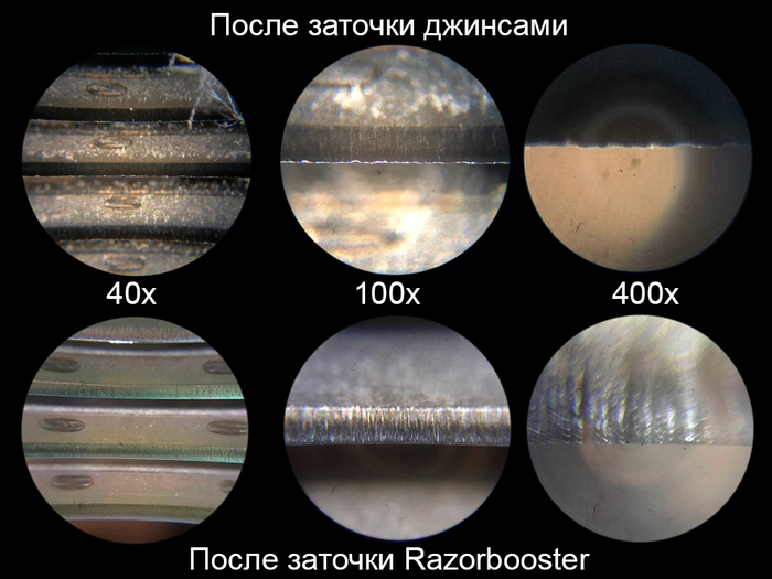 - после заточки джинсами (не помогло). Будем точить Razorbooster’ом