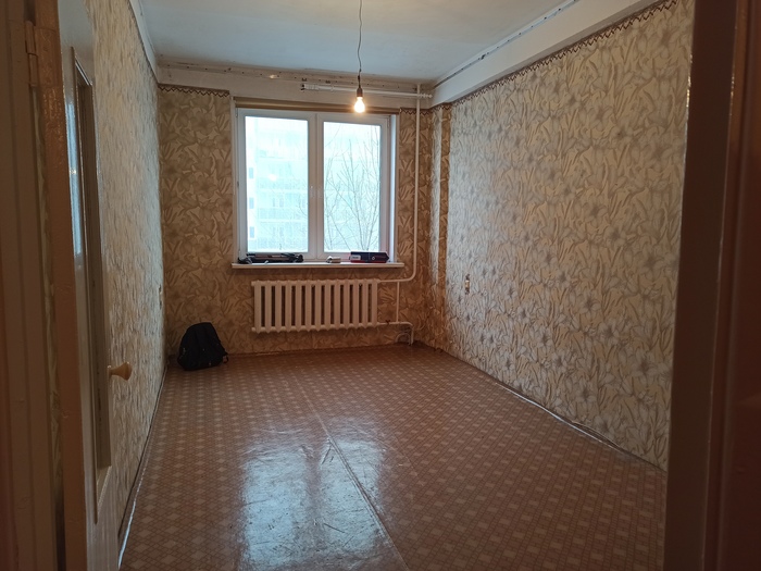 Попутно.. мы постоянно мониторили рынок квартир в нашем районе, чтобы быть в курсе цен и конкурентов. В один из дней появилось одно довольно таки интересное предложение.. тоже в соседнем доме.. выставили на продажу квартиру.. однокомнатная, но большая - 46м2. Ремонт никакой, но подкупили высокие потолки – 3 метра и большие окна.. еще и цена была очень приятная.. ниже рынка тысяч на 200-300. А у нас как раз оставалась еще небольшая сумма с продажи дома + небольшие накопления и возможность занять у родных.. в общем, она была нам по карману. Решили разузнать по подробнее про эту квартиру.. попросили для этого нашу знакомую риелтора.
