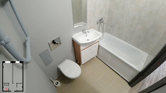 Восстановили ванную комнату, т.к. там было все разрушено.