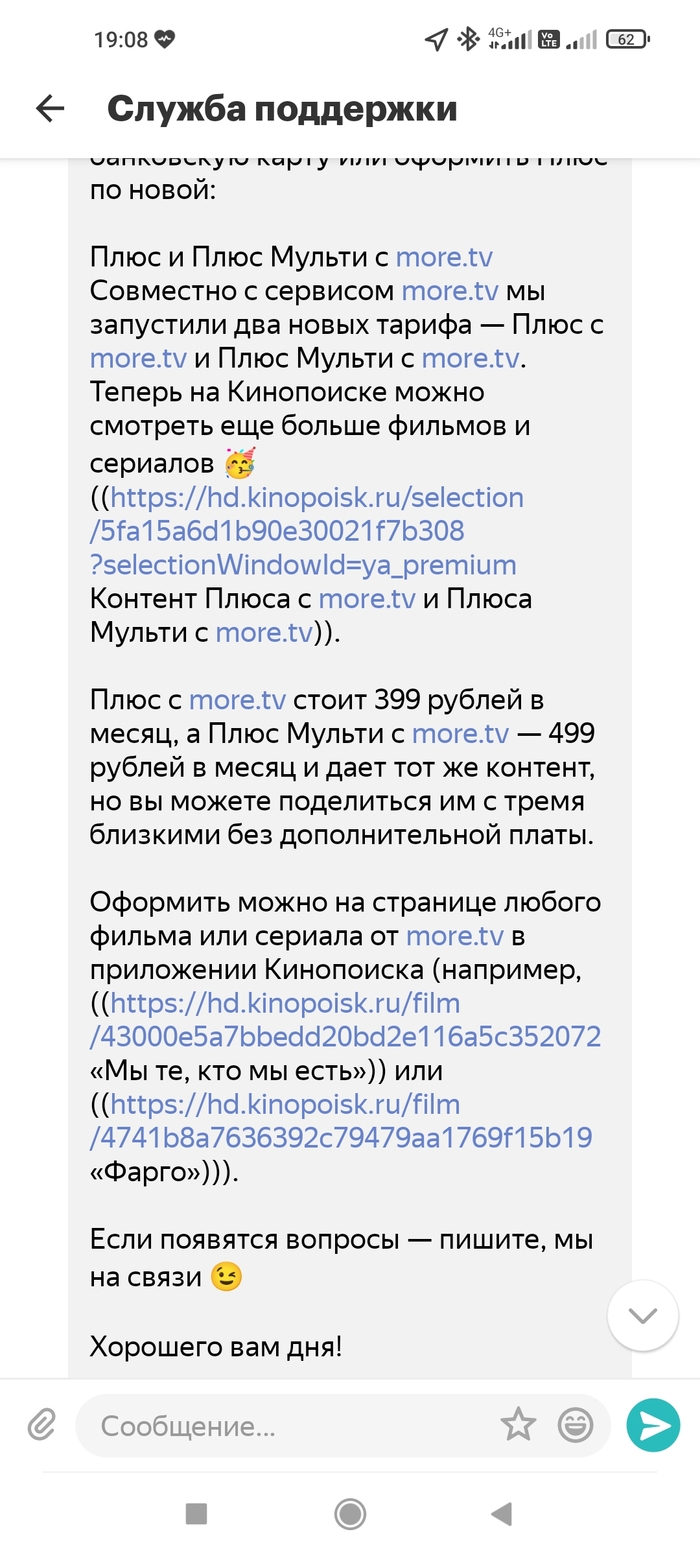 Если они резко изменят политику и "технический сбой" сделает невозможным использование сервиса на "архивном тарифе" (в том числе и после этого поста!!!), перейду я на новый тариф? Однозначно нет. Есть альтернативы. Я брал кредит и мне на год подарили Сбер Прайм+ и подписку на окко на год. Там тоже много интересного в рамках этой подписки.
