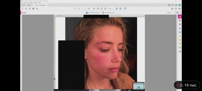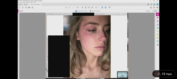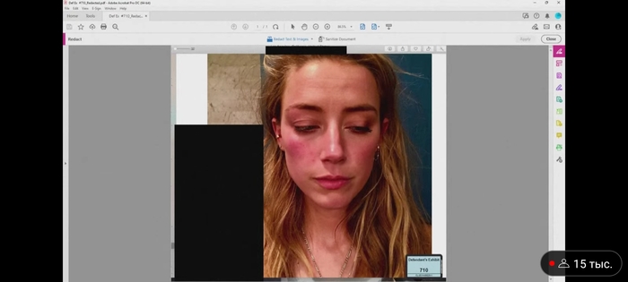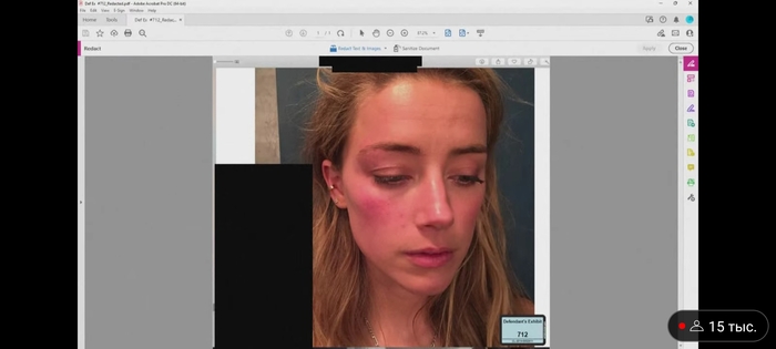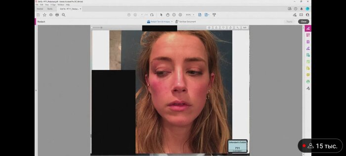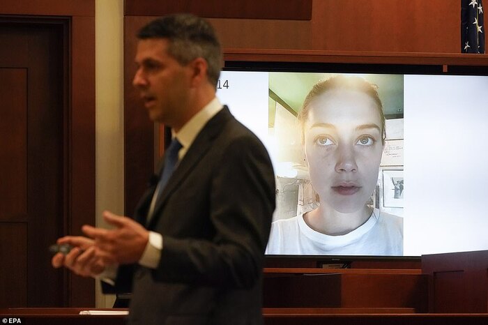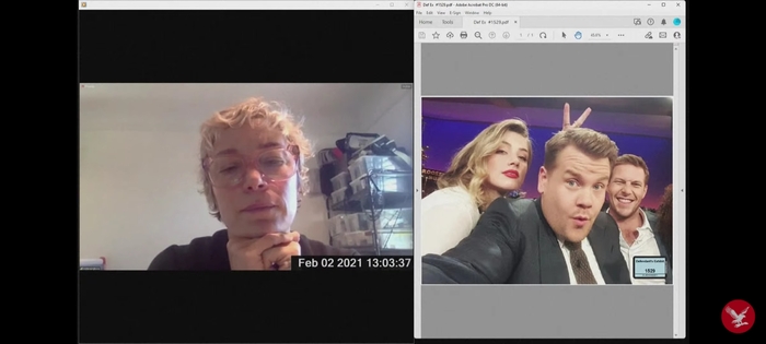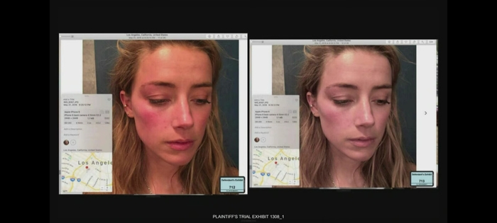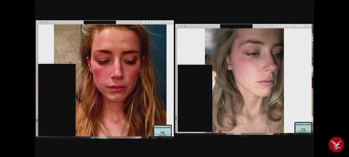 Херд свидетельствует, что, по ее мнению, на фотографии Деппа в поезде с явными повреждениями лица этого на самом деле нет, и она пытается сказать, что это фотошоп, но ее прерывает г-жа Васкез. Ранее Херд также утверждала, что фотография сделана не там и не тем охранником.