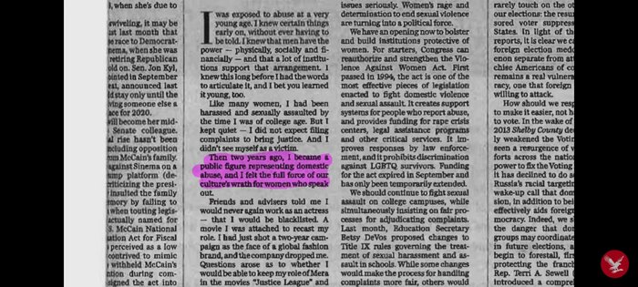В ответ на дальнейшие вопросы Херд заявила, что статья была о влиятельных мужчинах, сексуальном насилии и связанных с этим проблемах того времени, а не только о Деппе.