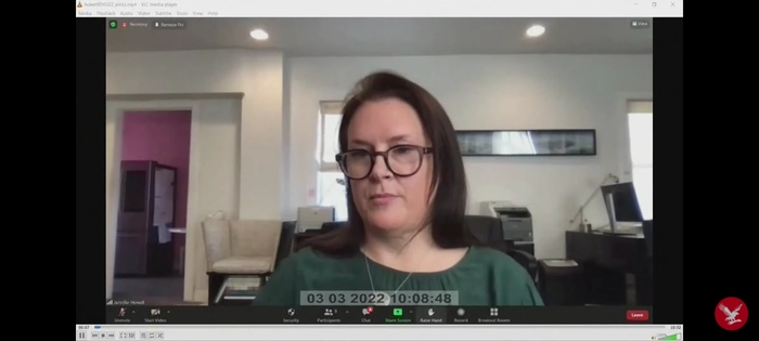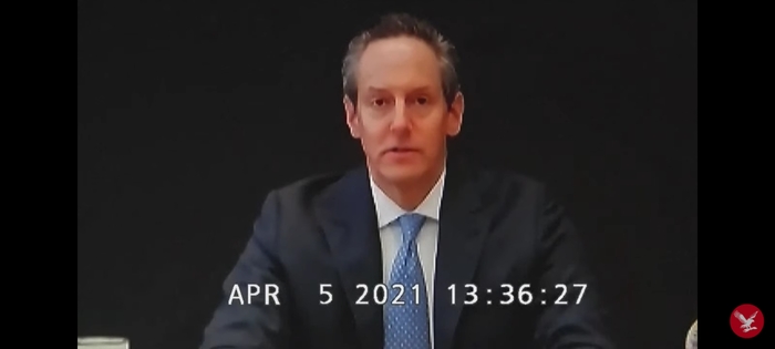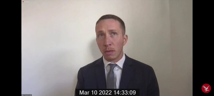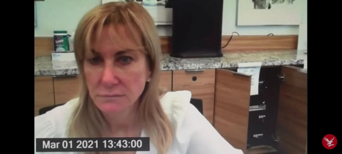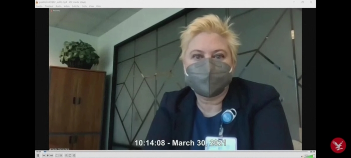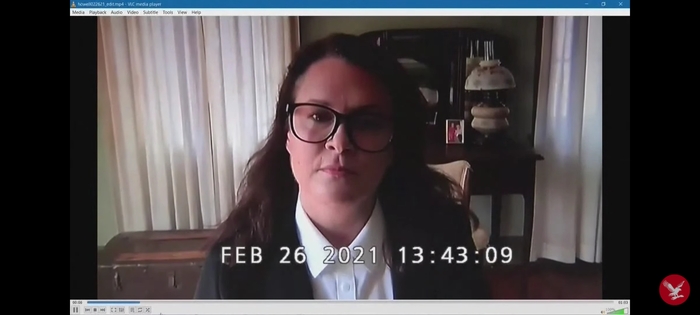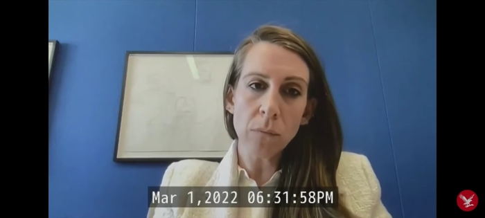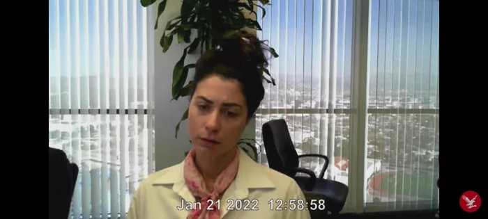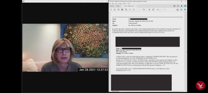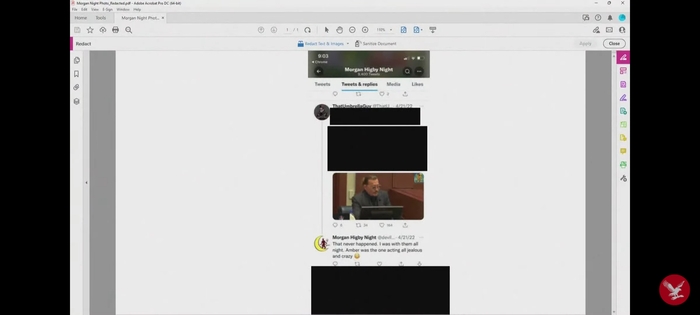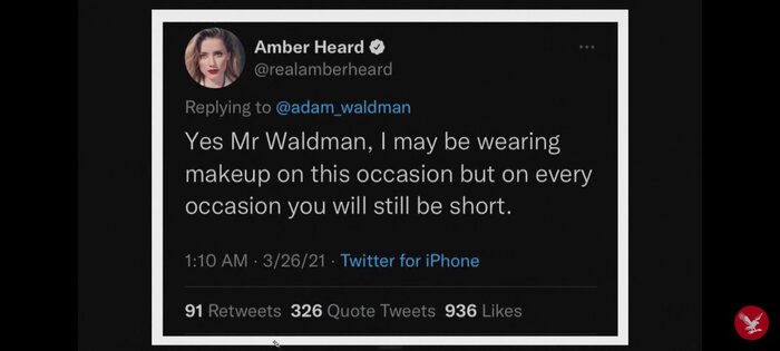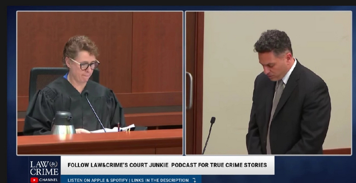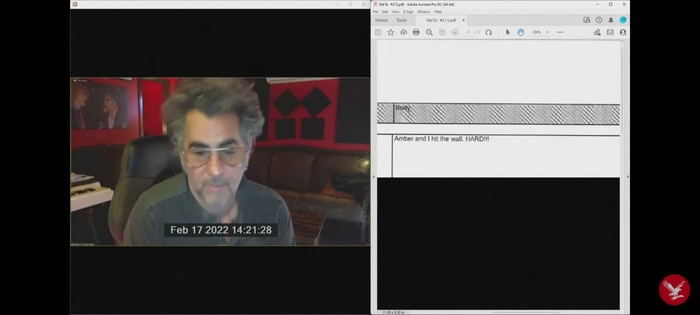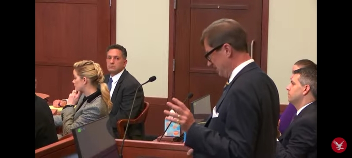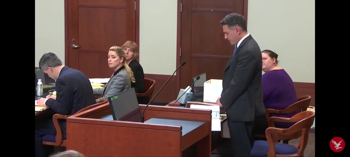 Далее воспроизводится видеозапись показаний Херд в 2016 году, в которой она говорит о попытке связаться с Деппом через Джерри Джаджа, чтобы сообщить ему о подаче иска, чтобы он не узнал об этом через TMZ.