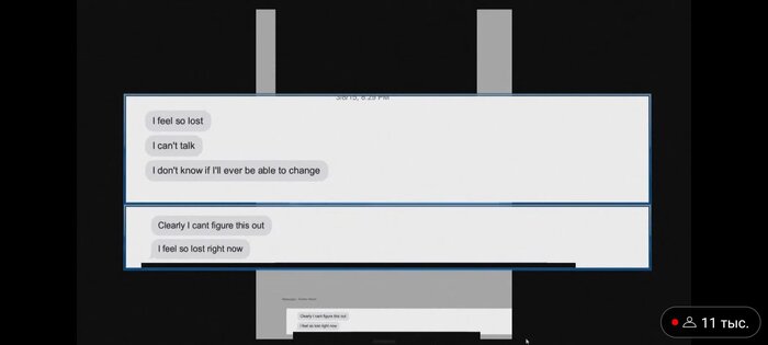 Ее спрашивают о различных записях и любовных записках между ними, а также о последней записи, в которой она извиняется за то, что стала "сумасшедшей".