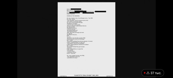 Допрос перешел к дневнику, который Депп и Херд вели, и к фотографии на обложке, на которой они изображены в Австралии в мае 2015 года, когда "вернулись на стадию медового месяца". При этом фотография уже после травмы Деппа.
