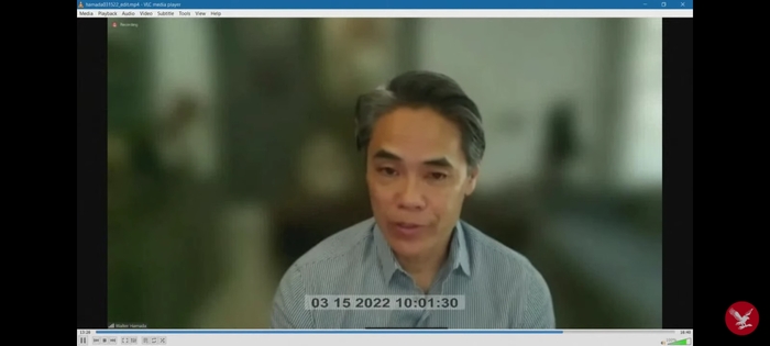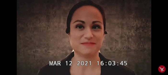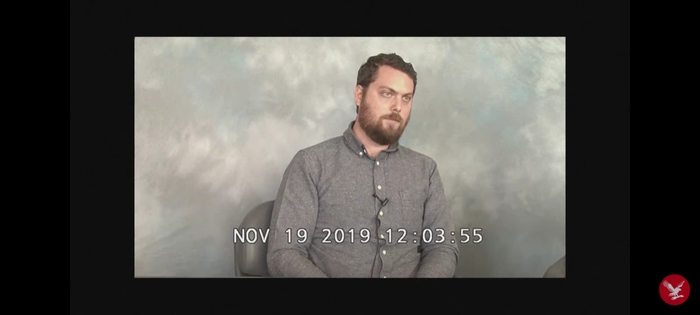 Воспроизводится видео из показаний Херд, взятых в августе 2016 года во время развода, в котором она слушает ту же аудиозапись.