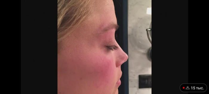 Ее спрашивают, увеличивала ли она насыщенность фотографии, чтобы ее лицо выглядело более красным.