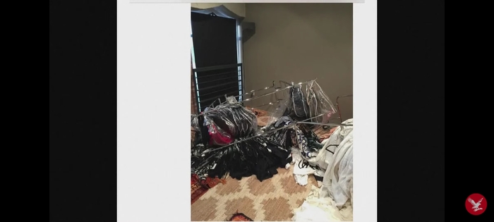 Херд указывают, что не смотря на то, что Херд не сделала фото беспорядка или своих травм после инцидента, он сфотографировала надписи на двух зеркалах. Камилла Васкез спрашивает, не потому ли Херд это сделала, что добавила надписи? Херд утверждает, что Депп написал все, включая надпись красным цветом, которая относится к песне Карли Саймон "Ты такой тщеславный".