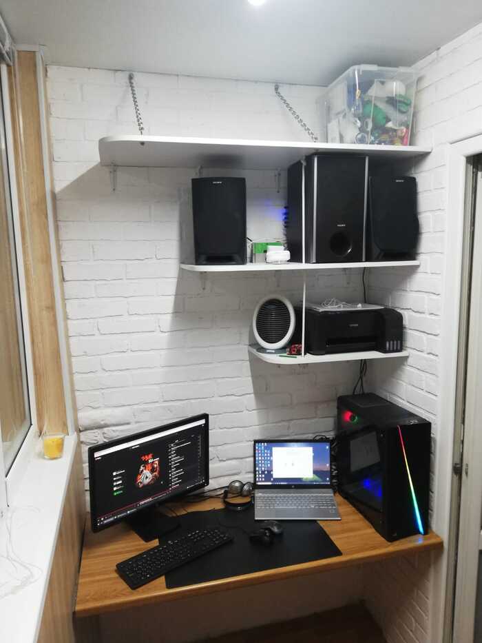 Плюсы: +4кв.м, успел до подорожания материалов, своя рабочая зона, зона для ребенка, шведская стенка с турником и навесным для ребенка, качели (закреплены на 2 крюка по 2 анкера за утеплителем), место под комп, колонки и принтер и еще для всяких мелочей. Есть вторая лоджия поменьше под хлам, поэтому нет ничего лишнего