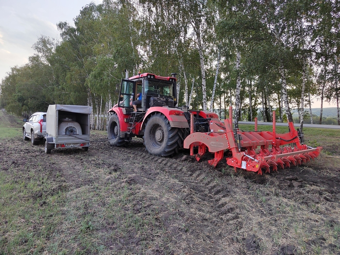 Вообще этот лентяй трактор способен таскать и пятиметровый глубокорыхлитель, но любимое блюдо сезона в этом году: "жричёдали". Поставку пятиметровых агрегатов обещали не раньше октября, плюс непредсказуемые задержки на логистику. Ждать некогда, работать надо. Основное правило сельского хозяйства: "лучше один раз вовремя, чем десять раз правильно".