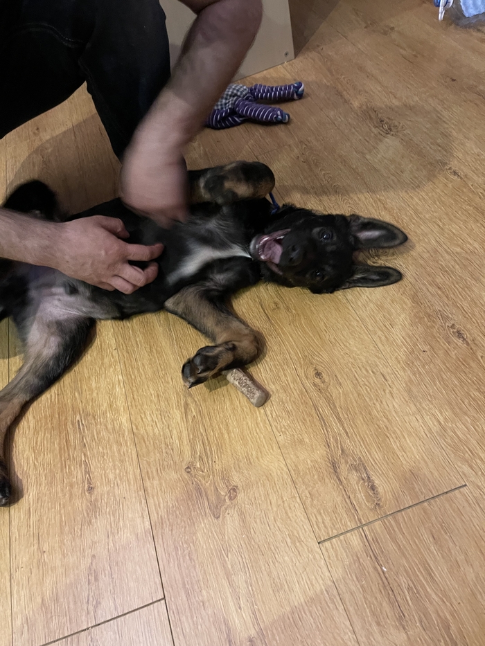 Выгулы составляли 15-20 минут, 4-5-6 раз в день. И это привело к тому, что в 5-6 месяцев он уверенно терпел. В 6 месяцев мы перешли на 3х разовый выгул. В 7, из-за выхода на работу всех членов семьи, к 2х разовым (на самом деле, в 7 еще желательно выгуливать по 3 раза. Мы оставляли пеленки, но они игнорировались и после работы я бежала с мелочью сразу на улицу).