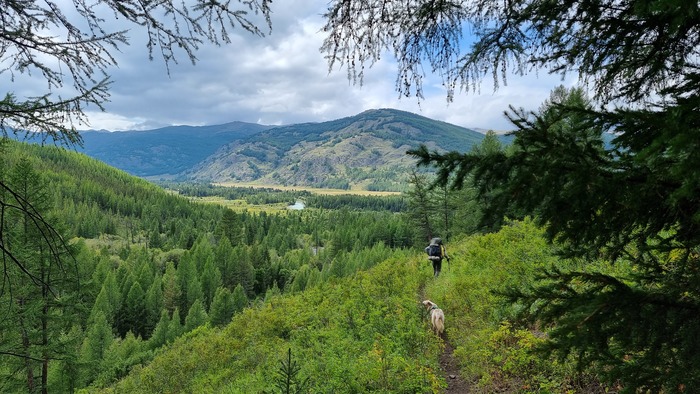 Планы на этот день были определены ещё на Алахинском озере. Тарас хочет рыбалку, Наташа запасы чабреца. Так и поступили, сразу после завтрака один вооружился удочкой и сигналом охотника, другая - тканевым мешком и сигналом охотника, фальшфейером, свистком, ножом, Марсом.