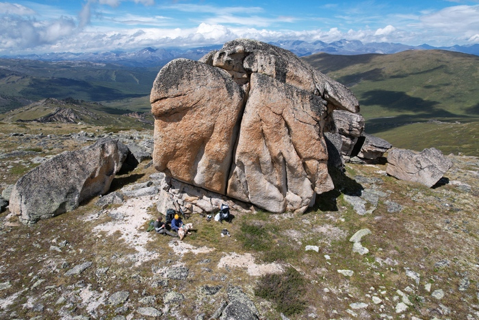 Как же здорово кипятить чай и лакомиться остатками хариуса в надёжном укрытии, а не идти в это время под сильным дождём. А когда непогода ушла вниз по долине мы пили чай, расположившись на большом удобном камне, и грелись в ещё горячих лучах вечернего солнца.