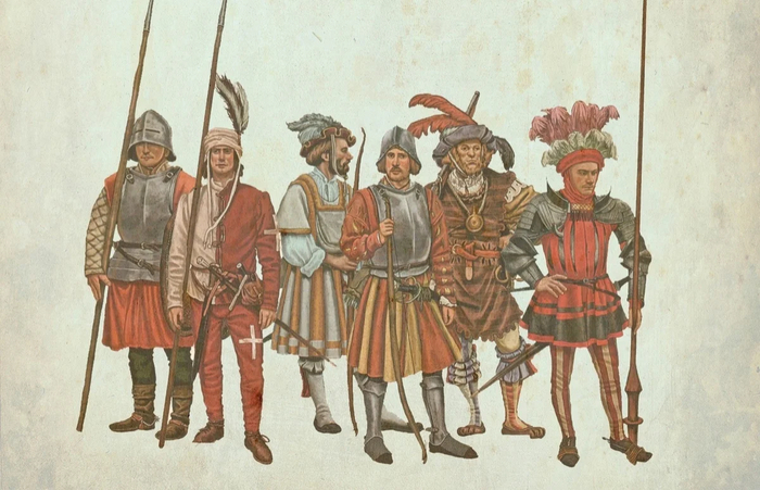 Начнём с дополнения к предыдущей истории. Вспомним про войну в Италии XV века, мол самые безопасные сражения тогда были, потому что их вели наёмники. Но давайте посмотрим на солдат этих вольных отрядов. Можно заметить, что зачастую они носили довольно странные доспехи. Ну, то есть не было у них такого, что полный сет со всеми бонусами собран. Обычно латы — одни, наплечник — другой, наручи — третьи. Короче, кошмар перфекциониста. Но, есть гипотеза, что это был такой хитрый план. Во-первых, покупать или собирать доспех по частям — было дешевле, чем снимать всё целиком с поверженного или взятого в плен противника (который тоже вряд ли бы обладал такой роскошью), или там заказывать в супермаркете (что среде рядовых вообще было редкостью). А, во-вторых, это было такой своеобразной ходячей рекламой. Мол, посмотрите, сколько у меня этих частей. А если учесть, что каждую из них я снимал с поверженного противника — оцените, насколько я хорош в бою, и через сколько я схваток прошёл!