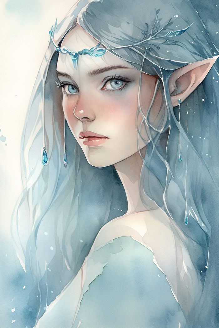 Если у вас жаркое лето, и хочется прохлады - этот арт для вас. Зимняя акварель подарит ощущение прохлады, а милый детский портрет маленького эльфенка наполнит вашу комнату теплом и уютом.
