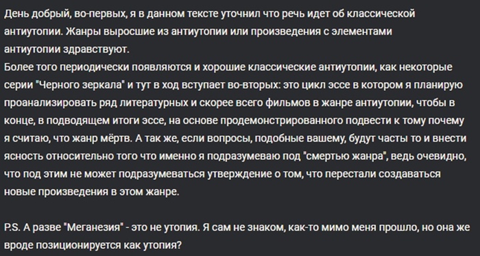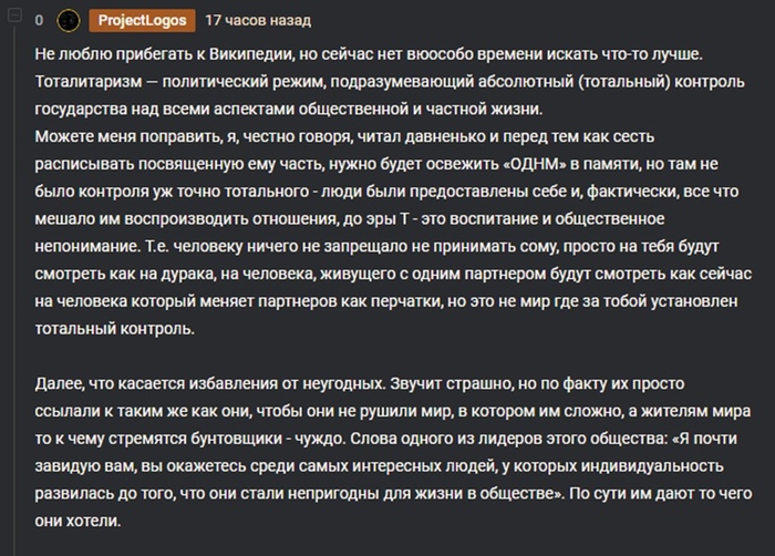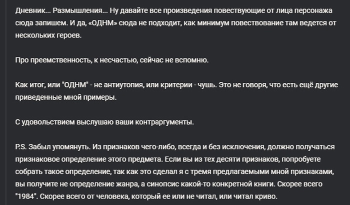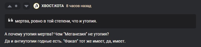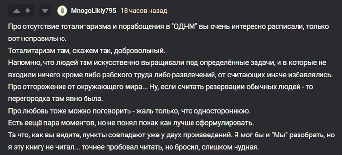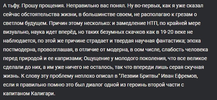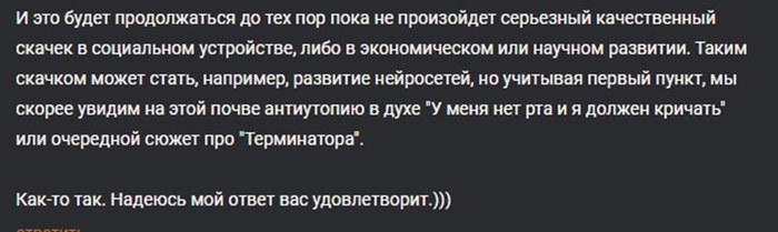 Подводя чёрту под размышления автора можно сказать, что он попал в мир людей, полностью удовлетворённых.