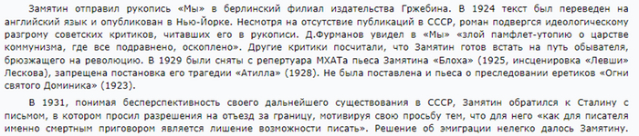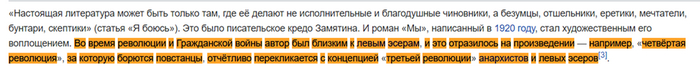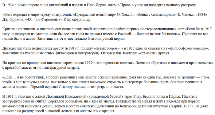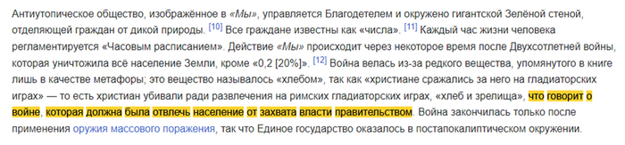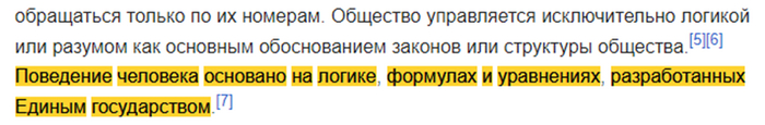 Нам это произведение интересно не только по той причине, что оно является антиутопичным, но и потому, что его события происходят в том же мире, что и события рассмотренного ранее романа, о чём прямо говорится в самом произведении.