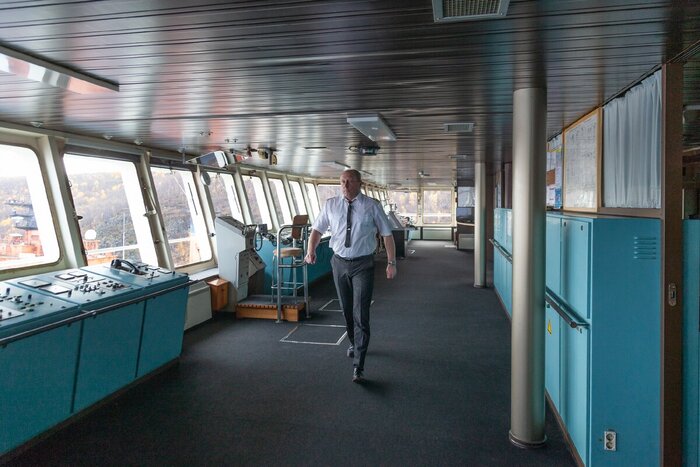 Если кто-то думает, что капитан все время находится в тепле на мостике, это не так. Выходить тоже приходится. Погрузка, разгрузка, проводка, буксировка — на ледоколе за все ответственность несет капитан.