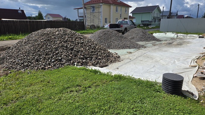 Купил 60 тонн щебня. Долго ждал, много платил, много думал.... Притом привезли 2 разных фракции, но то не беда, покрупнее вниз, помельче - наверх.