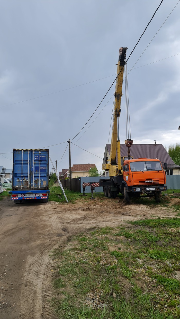 Контейнер привезли и была целая операция по его установке на место. Ибо он тяжёлый и весьма габаритный. Но операция прошла успешно.