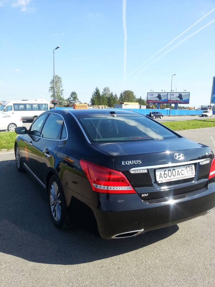 Kia Quoris такси поступила новая партия автомобилей, на этот раз это были Hyundai Equus. По сути это тот же Quoris но в 2 раза(тогда) дороже. Мотор, АКПП, подвеска, размер колёс, 85% деталей интерьера одни и те же.