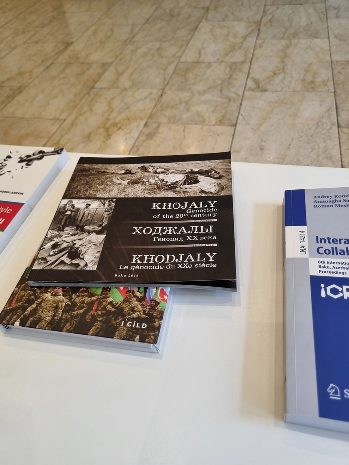 На ресепшене отеля, ожидая заселения, я увидел одну очень интересную книгу. Честно говоря, не знаю, это инициатива хозяина отеля или государственная политика размещать такие вот произведения, чтобы гости страны ознакомились с азербайджанским видением на конфликт.